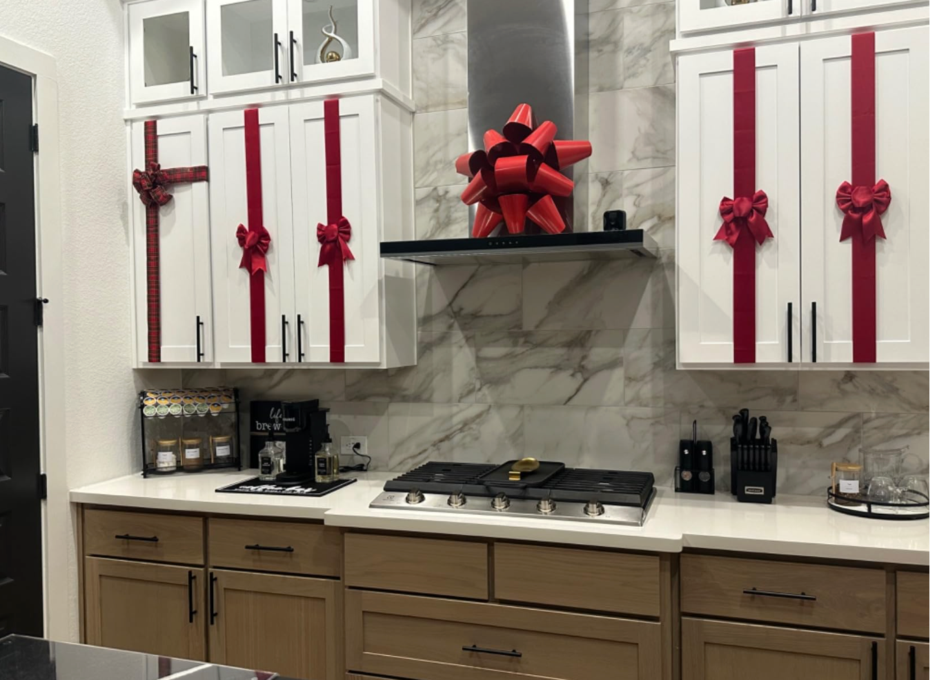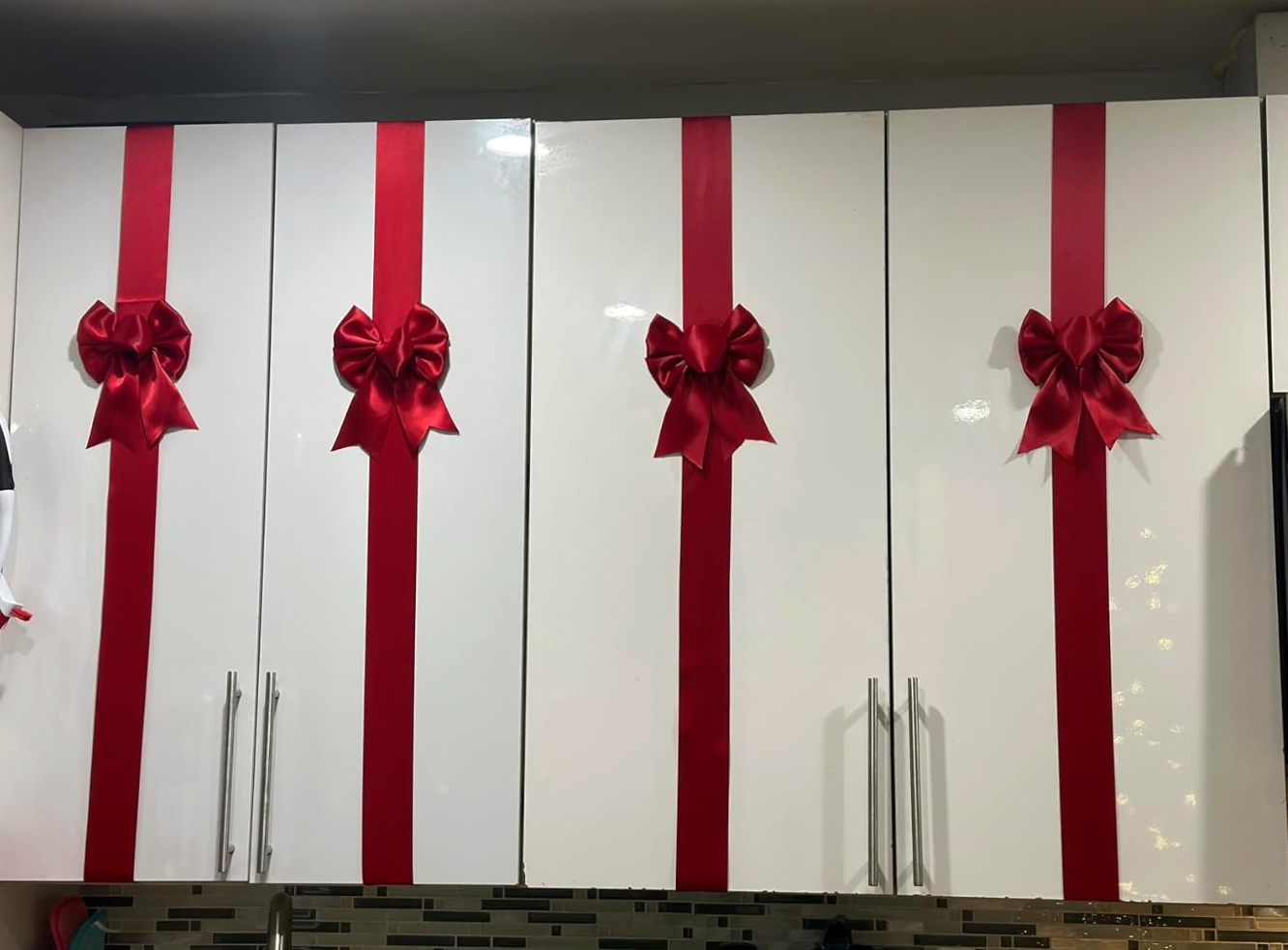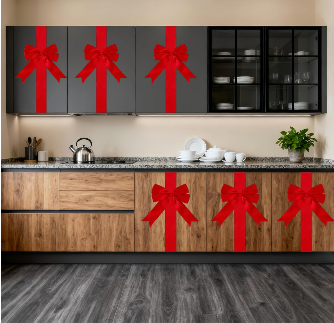 The Merry Market Velcro Christmas Cabinet Ribbon Bows make decorating effortless. Just wrap, fasten, and instantly transform your cabinets with a festive, polished look. The adjustable Velcro strap ensures a perfect fit, while the satin finish adds a cozy, elegant Christmas touch in seconds.