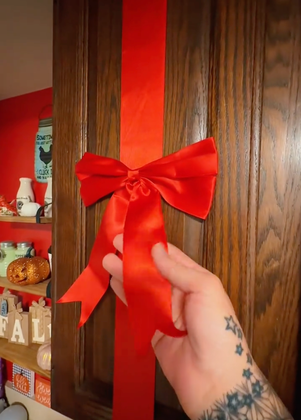 Elevate your holiday décor with the Merry Market Velcro Christmas Cabinet Ribbon Bows — the easiest way to make your home feel festive. Each bow features an adjustable Velcro strap, letting you wrap cabinets, doors, and handles in seconds with no knots or tape required. Made from premium satin ribbon with a soft, elegant sheen, these reusable bows stay securely in place while adding a touch of Christmas magic to any room. Perfect for kitchens, living spaces, or even gifts — effortless decorating has never looked this good.